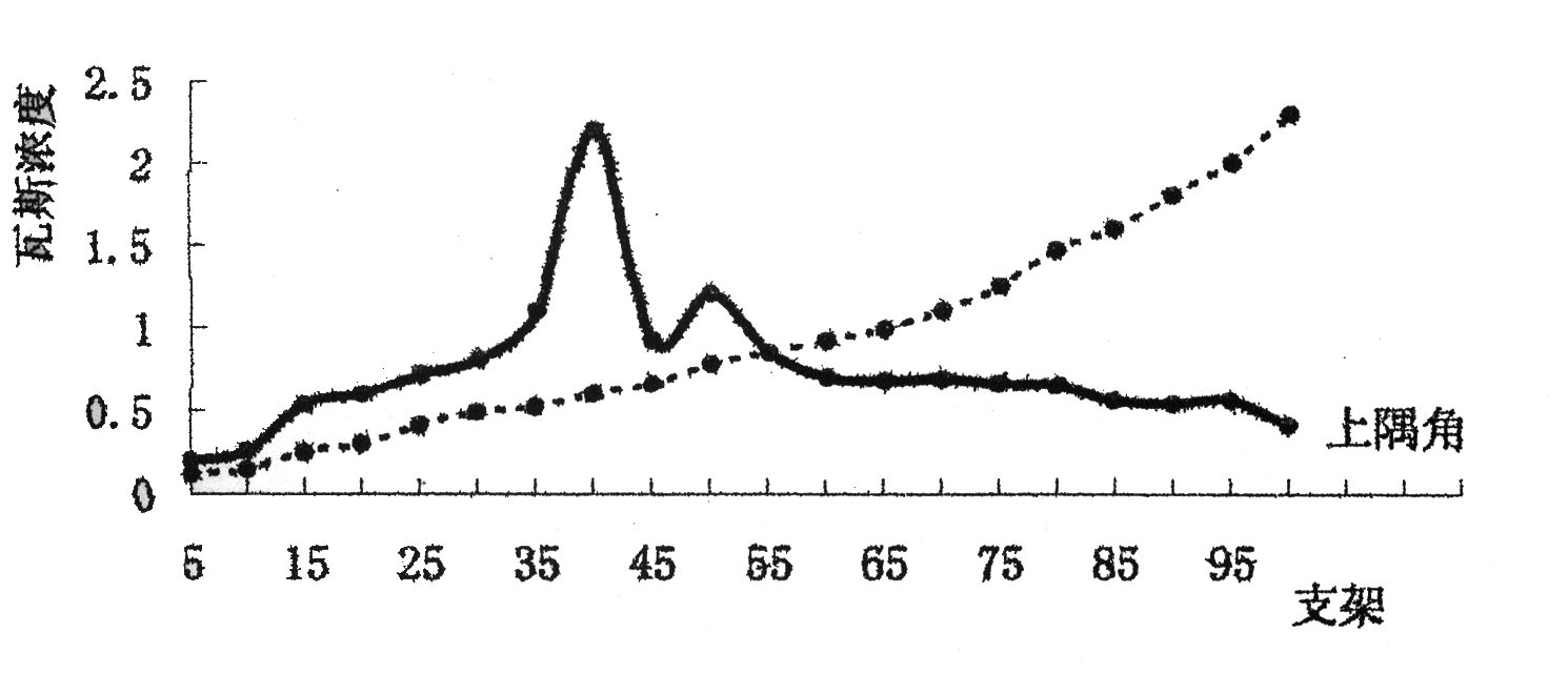 為了摸清工作面及采空區(qū)沿采面方向的濃度分布,我們對(duì)2-411工作面瓦斯進(jìn)行了連續(xù)測(cè)定工作。
