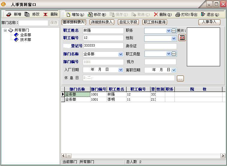 根據(jù)實(shí)際需求設(shè)置部門、錄入員工基本信息、詳細(xì)信息,并可對員工進(jìn)行搜索,方便對個(gè)人進(jìn)行操作。