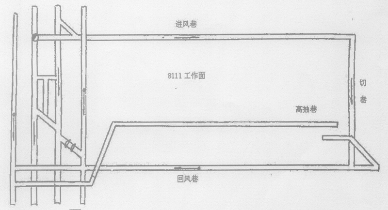 6、通過對綜放工作面的瓦斯涌出來源分析,以及頂板巖石活動規(guī)律研究,通過對通風(fēng)方式和抽放方式的一步一步的探索研究,通風(fēng)方式確定為“U+I”型通風(fēng)方式,工作面布置內(nèi)錯尾巷排放采空區(qū)和落山角瓦斯,采用走向高抽巷抽放鄰近層瓦斯.將鉆孔與傾斜高抽巷反向(抽放瓦斯的流動方向與工作面推進(jìn)方向相反)抽放原理改為走向高抽巷正向(抽放瓦斯的流動方向與工作面推進(jìn)方向相同)抽放,控制工作面向采空區(qū)內(nèi)部漏風(fēng),從而達(dá)到既提高瓦斯抽放量,減少風(fēng)排瓦斯量,降低回風(fēng)及落山角瓦斯?jié)舛?,又有效控制采空區(qū)漏風(fēng),避免引起自然發(fā)火,實現(xiàn)綜合治理綜放面瓦斯,保障安全生產(chǎn)的目標(biāo)。