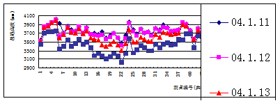 從2005年3月起開始在2303工作面生產(chǎn),共生產(chǎn)了5個月。試采初期兩個月,開機率較低,約為60%。工作面開機率較低、產(chǎn)量不高的主要原因主要是運輸距離遠、環(huán)節(jié)多,皮帶機電控故障率高;又遇到兩條周邊小煤窯的老巷穿過,對回采影響較大。所以把考核期定在2005年5月至7月。期間工作面最高日產(chǎn)量2.51萬t,平均日產(chǎn)量2萬t以上;工作面最高月產(chǎn)量63萬t。