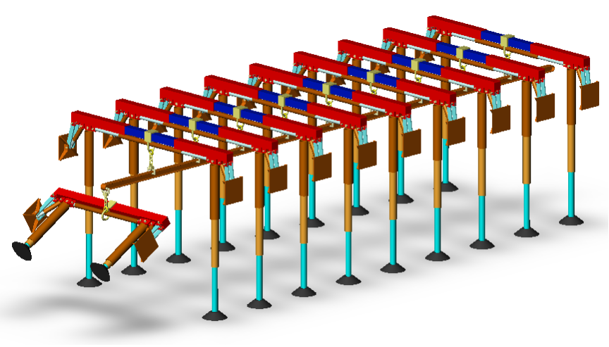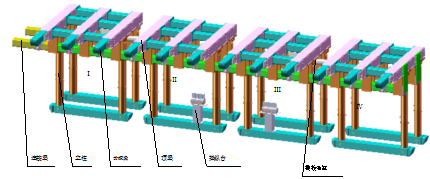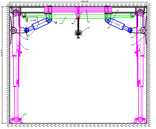 研制了大變形回風(fēng)巷超前支護(hù)系統(tǒng),支移機(jī)構(gòu)由吊掛機(jī)構(gòu)、自懸式軌道、行走機(jī)構(gòu)和平衡機(jī)構(gòu)組成;其特點為:單框架結(jié)構(gòu)型式;能適應(yīng)動壓巷道變形量要求;避免了對頂板的反復(fù)支撐;可根據(jù)巷道斷層尺寸進(jìn)行頂梁調(diào)節(jié);有護(hù)幫機(jī)構(gòu);通過吊掛環(huán)形工字鋼梁實現(xiàn)支架的支、回、運等動作。