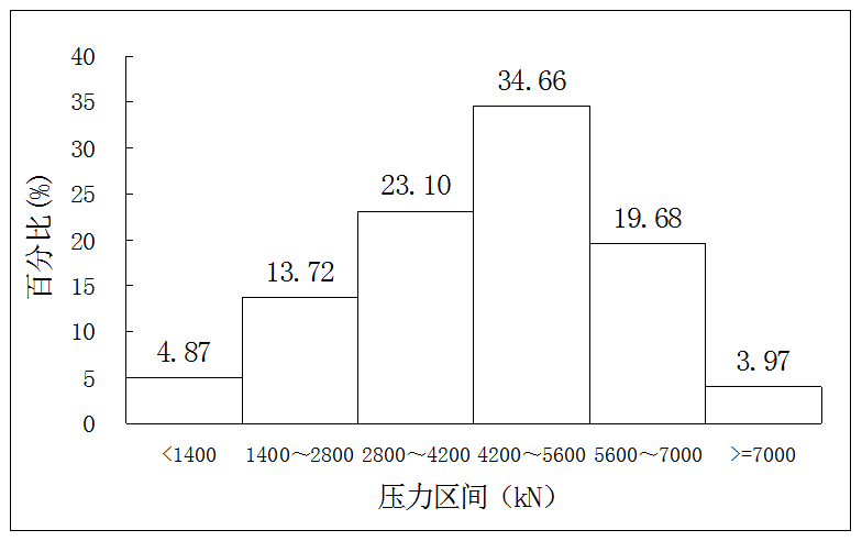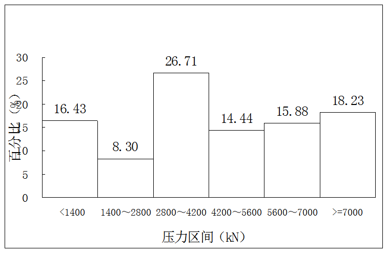 (6)提高了支架的初撐力。支架初撐力達(dá)到支架工作阻力的81%以上;同時加大前梁千斤頂缸徑,其缸徑為φ200,增加了前梁對頂煤的支撐力,提高了支架對新暴露頂板的控制能力。