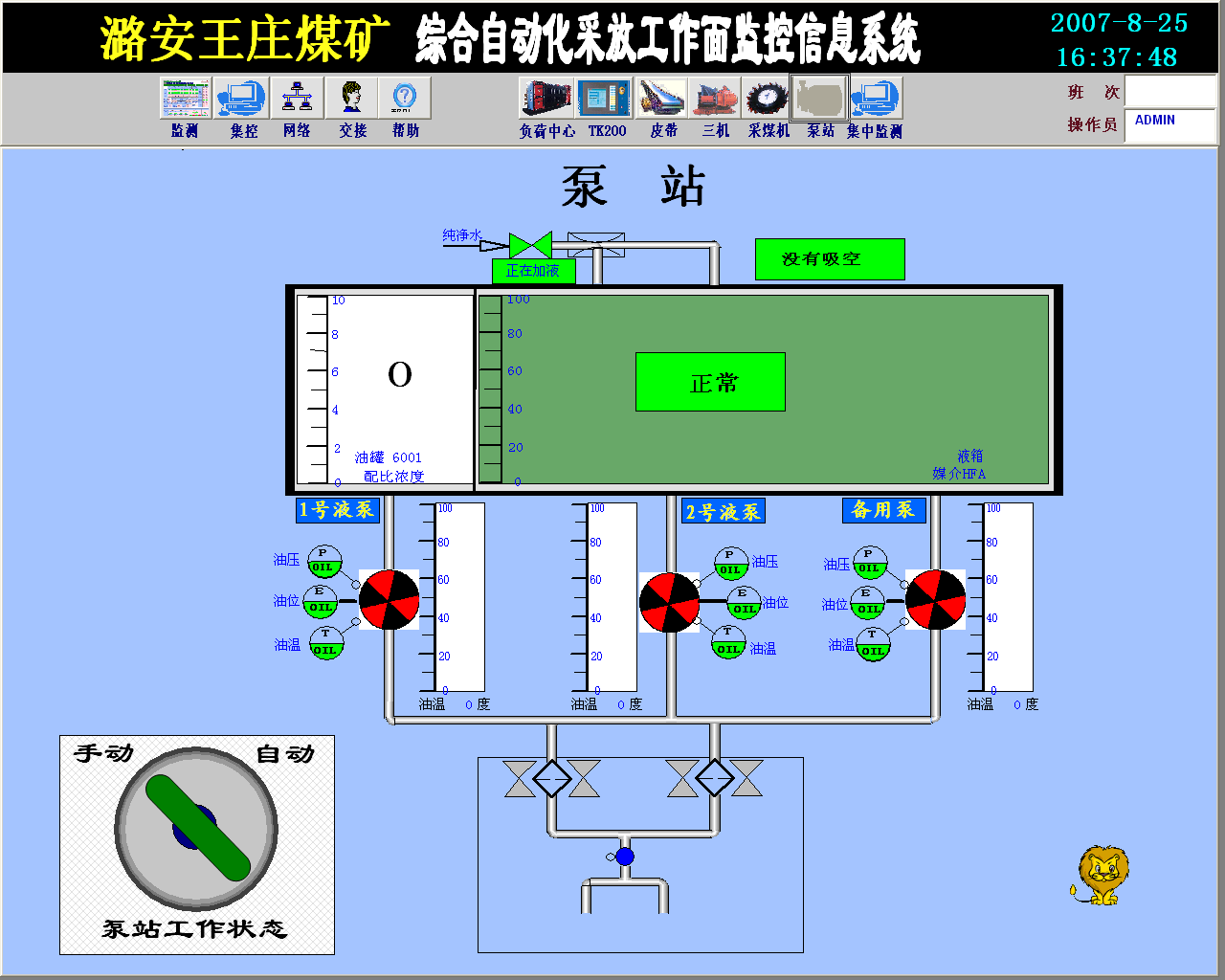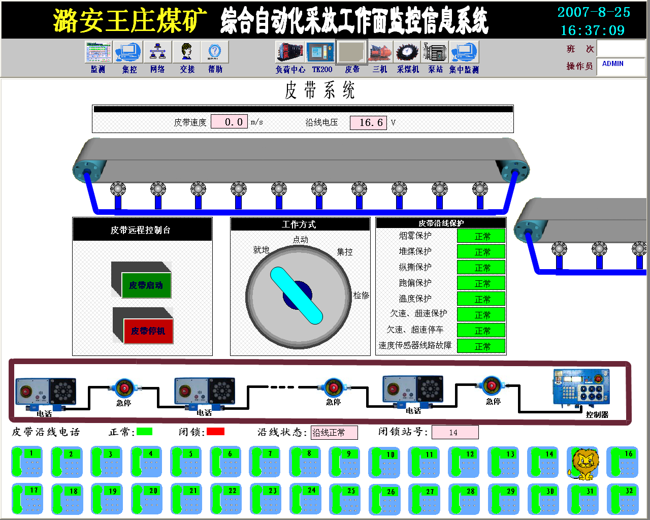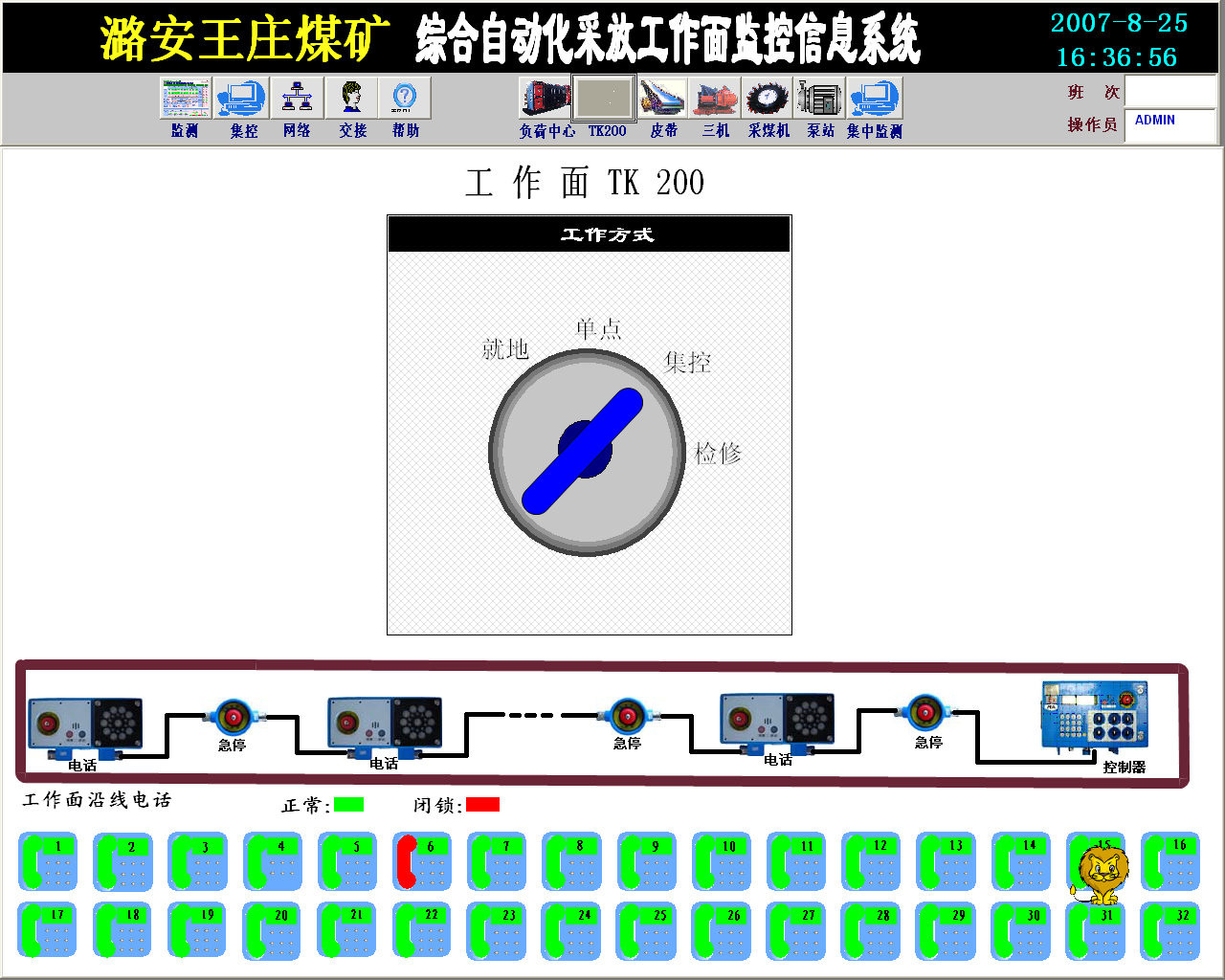 將電液控制技術(shù)應(yīng)用于大采高四柱支撐掩護(hù)式綜放設(shè)備,采用漢字顯示,開發(fā)適合于采放工藝要求的自動跟機(jī)控制程序,達(dá)到采放平衡。采用本安型工業(yè)以太網(wǎng)技術(shù),通過Modbus/TCP總線、標(biāo)準(zhǔn)的OPC接口,實現(xiàn)系統(tǒng)控制臺對工作面設(shè)備的集中控制,實現(xiàn)了綜放工藝自動化。實現(xiàn)主運輸、供電設(shè)備的地面集中控制,無人值守。大幅度提高綜放工作面及環(huán)節(jié)系統(tǒng)自動化水平、安全可靠性,達(dá)到減人提效的目的。
