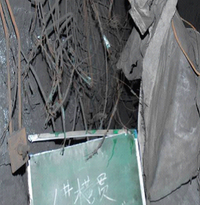 1號聯(lián)絡巷有明顯過火痕跡,風筒燒毀僅剩金屬筋條,錨網(wǎng)塑料燒脫露出金屬線等。