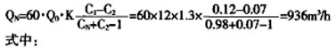 此法計(jì)算的實(shí)質(zhì)是將采空區(qū)氧化帶內(nèi)的原始氧含量降到防火惰化指標(biāo)以下,按下式計(jì)算注氮流量。