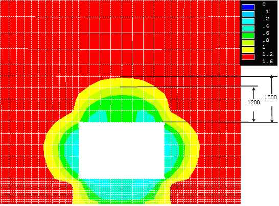 ①破碎區(qū)(SF≤1):最大深度在1.2m左右。