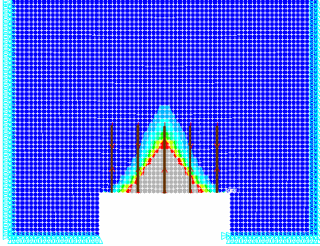 根據(jù)虎龍溝煤礦5#煤層的地質(zhì)賦存條件和底板軟巖開拓巷道的圍巖特征,建立有限元數(shù)值計(jì)算模型,求出底板軟巖開拓巷道圍巖內(nèi)的最大主應(yīng)力和最小主應(yīng)力的分布特征,代入式(1)內(nèi)可以計(jì)算出摩爾庫侖安全系數(shù),其分布特征如圖1所示。