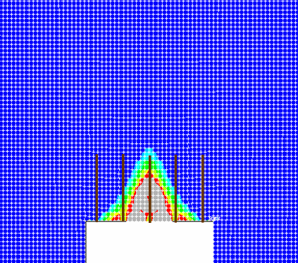 錨桿的合理長(zhǎng)度應(yīng)至少保證錨桿錨固到松散破碎范圍外一定深度。采用摩爾庫侖準(zhǔn)則作為圍巖破壞的準(zhǔn)則,定義巖石破壞準(zhǔn)則的摩爾庫侖安全系數(shù)