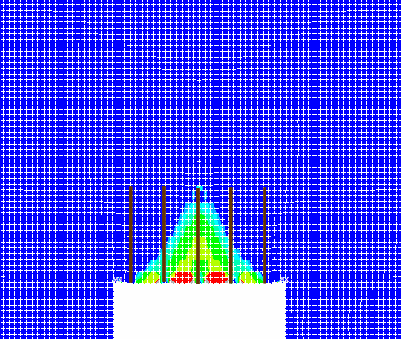 圖2(c)為安裝載荷6.0t時(shí)的應(yīng)力分布和變形圖。從圖中可知,頂板拉應(yīng)力區(qū)全部消除,對(duì)模型放大可知,當(dāng)安裝載荷 增加到6t時(shí),所有頂板離層都發(fā)生閉合。