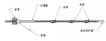為了解決軟巖條件下錨索錨固力較小的問題,現(xiàn)場(chǎng)確定選用快裝高預(yù)應(yīng)力“鳥窩”錨索,其結(jié)構(gòu)如圖3所示。