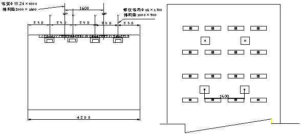圖4 層間距小于2.0m時(shí)支護(hù)斷面、平面示意圖