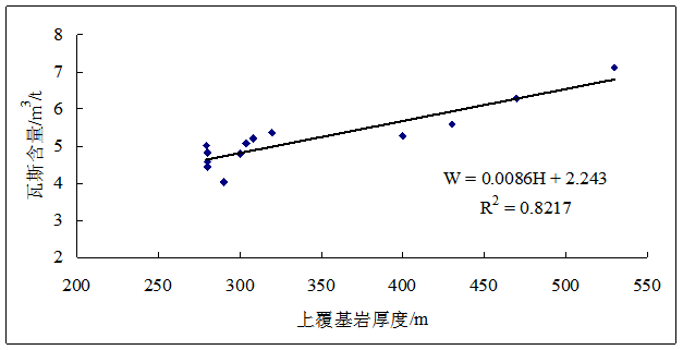 圖3 上覆基巖厚度與瓦斯含量關(guān)系圖