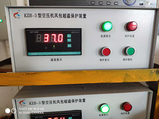 該項(xiàng)目采用KZB-3型空壓機(jī)儲(chǔ)氣罐超溫保護(hù)裝置。該儀器能對(duì)空壓機(jī)和儲(chǔ)氣罐溫度超標(biāo)故障時(shí)時(shí)進(jìn)的一種安全保護(hù)行監(jiān)控,數(shù)顯度數(shù)值直觀準(zhǔn)確,并且可聲光報(bào)警。可對(duì)設(shè)備的安全運(yùn)行起到有效的保護(hù)作用。