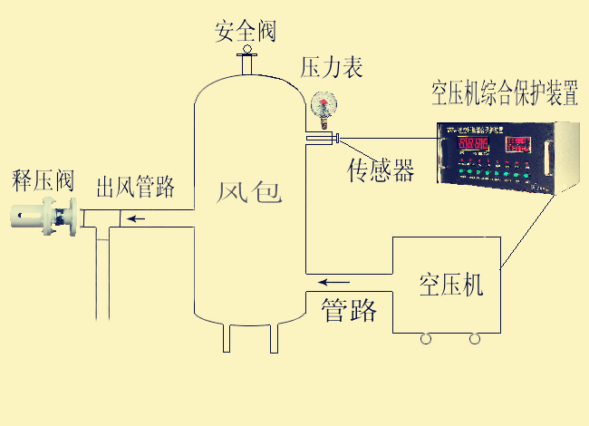 空壓機(jī)儲(chǔ)氣罐綜合保護(hù)功能的安裝(如圖(1)所示)