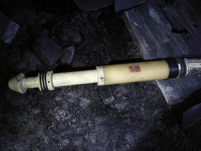清洗和干燥鉆孔:在洗孔器上纏上棉紗(直徑略大于36mm),倒上丙酮,利用安裝桿將洗孔器送到孔底進(jìn)行鉆孔干燥清洗一至兩遍,并記錄洗孔器進(jìn)入孔底時(shí)鉆桿外露長(zhǎng)度及洗孔器長(zhǎng)度。
