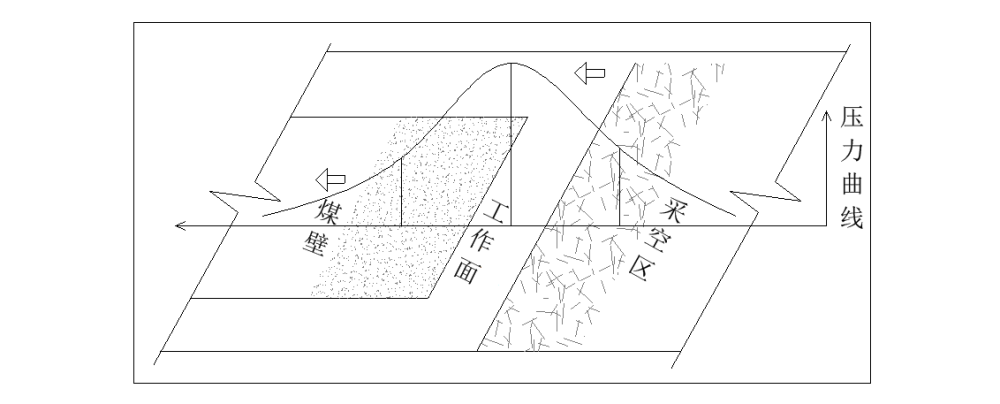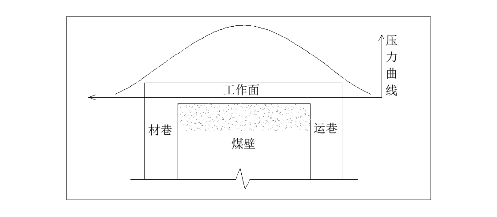 隨著煤礦開采深度的增加,礦山壓力對(duì)井下工程的影響也不斷增大,開拓巷道、掘進(jìn)巷道、回采巷道都受到不同程度的影響。其中回采工作面的材、運(yùn)兩巷受采空區(qū)的影響特別突出。隨著回采工作面的推進(jìn),采空區(qū)的壓力也伴隨前移,如圖1所示。