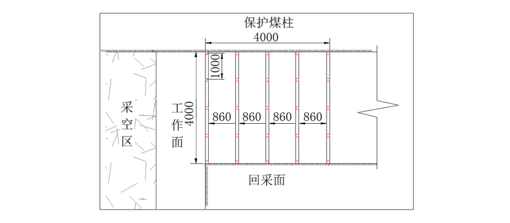 圖3 超前支護(hù)垂直于巷道走向布置示意圖