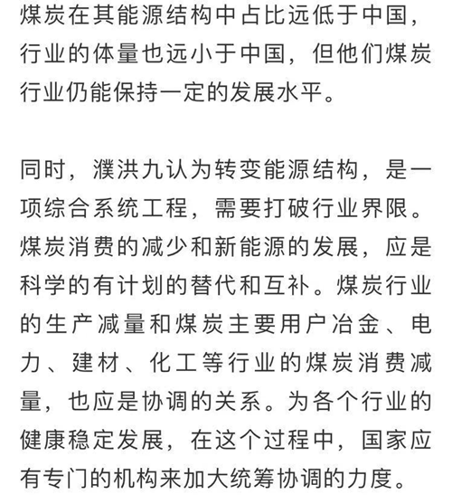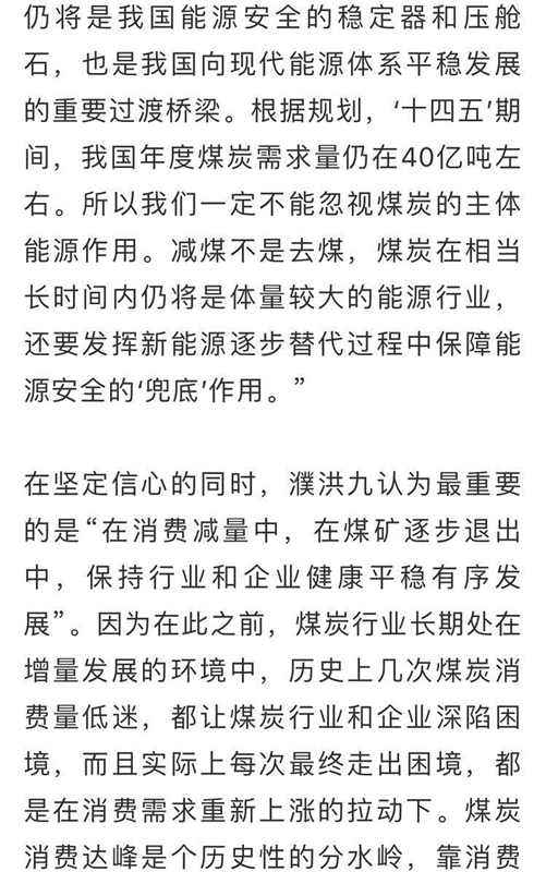 他認(rèn)為,煤炭行業(yè)發(fā)展到如今的體量,是為保障國家能源安全;在新的歷史時期,逐步減量發(fā)展,也是國家戰(zhàn)略所需。煤炭行業(yè)和企業(yè)要及早謀劃部分煤礦的退出事宜,這個過程中產(chǎn)生的很多問題也需要政策協(xié)同解決,需要政府和各界的幫助和支持。