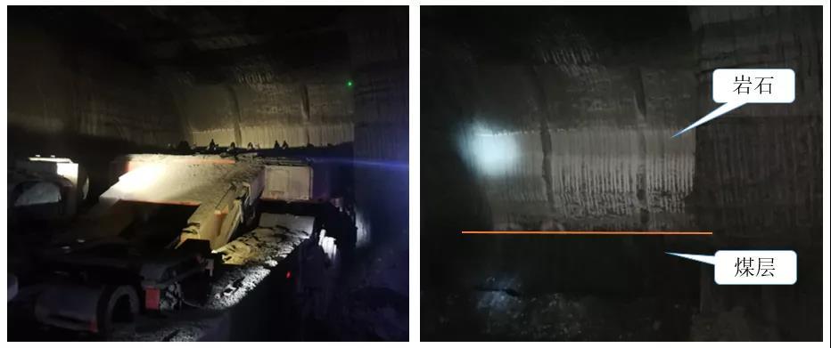 2021年8月該套裝備在國(guó)家能源集團(tuán)神東煤炭集團(tuán)石圪臺(tái)煤礦順利完成2-2上煤二盤區(qū)202主運(yùn)順槽和212回風(fēng)順槽的巷道掘進(jìn)任務(wù),巷道規(guī)格5.5m×2.6m,煤層平均厚度1.8米(局部不足1米),期間月平均進(jìn)尺750米以上,日最高進(jìn)尺60米,一周掘進(jìn)全巖斷層85米(局部巖石硬度F6以上),實(shí)現(xiàn)了國(guó)產(chǎn)裝備薄煤層半煤巖巷道快速掘進(jìn)的歷史性突破。