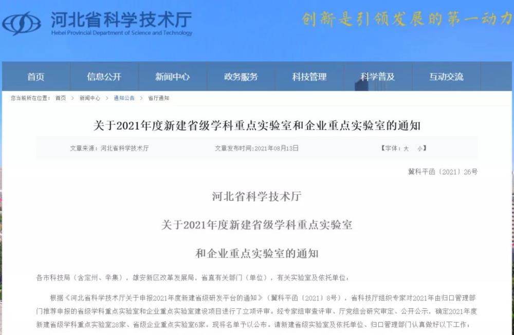 關(guān)于2021年度新建省級學(xué)科重點(diǎn)實驗室和企業(yè)重點(diǎn)實驗室的通知