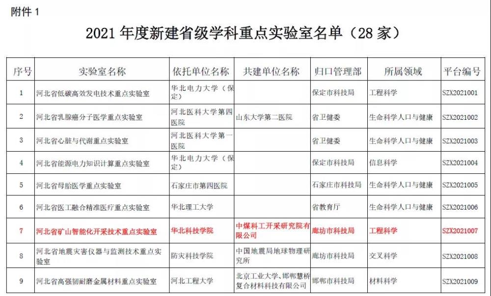 近日,河北省科技廳發(fā)布了《關(guān)于2021年度新建省級學(xué)科重點(diǎn)實驗室和企業(yè)重點(diǎn)實驗室的通知》(冀科平函〔2021〕26號)。由華北科技學(xué)院智能化無人開采研究所牽頭申報的“河北省礦山智能化開采技術(shù)重點(diǎn)實驗室”獲準(zhǔn)立項建設(shè),這是該校建校以來獲批的第4個省級重點(diǎn)實驗室,是河北省首個礦山智能化開采領(lǐng)域的省部級重點(diǎn)實驗室,也是煤炭行業(yè)首個智能化開采領(lǐng)域的省部級重點(diǎn)實驗室。