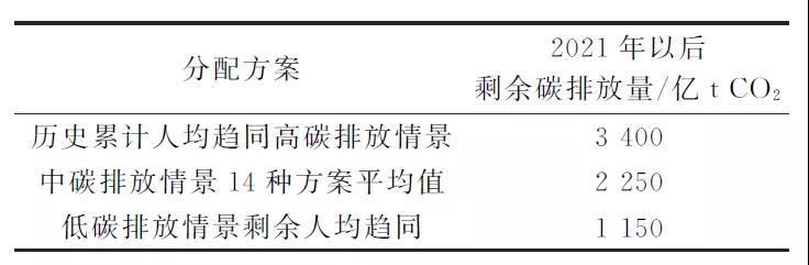 表1我國(guó)剩余碳排放空間