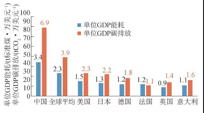 圖3 主要國(guó)家單位GDP能耗和碳排放(2019)