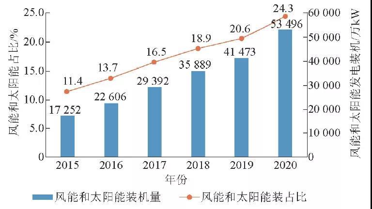 圖4 風(fēng)能和太陽能發(fā)電裝機(jī)情況(2015-2020)