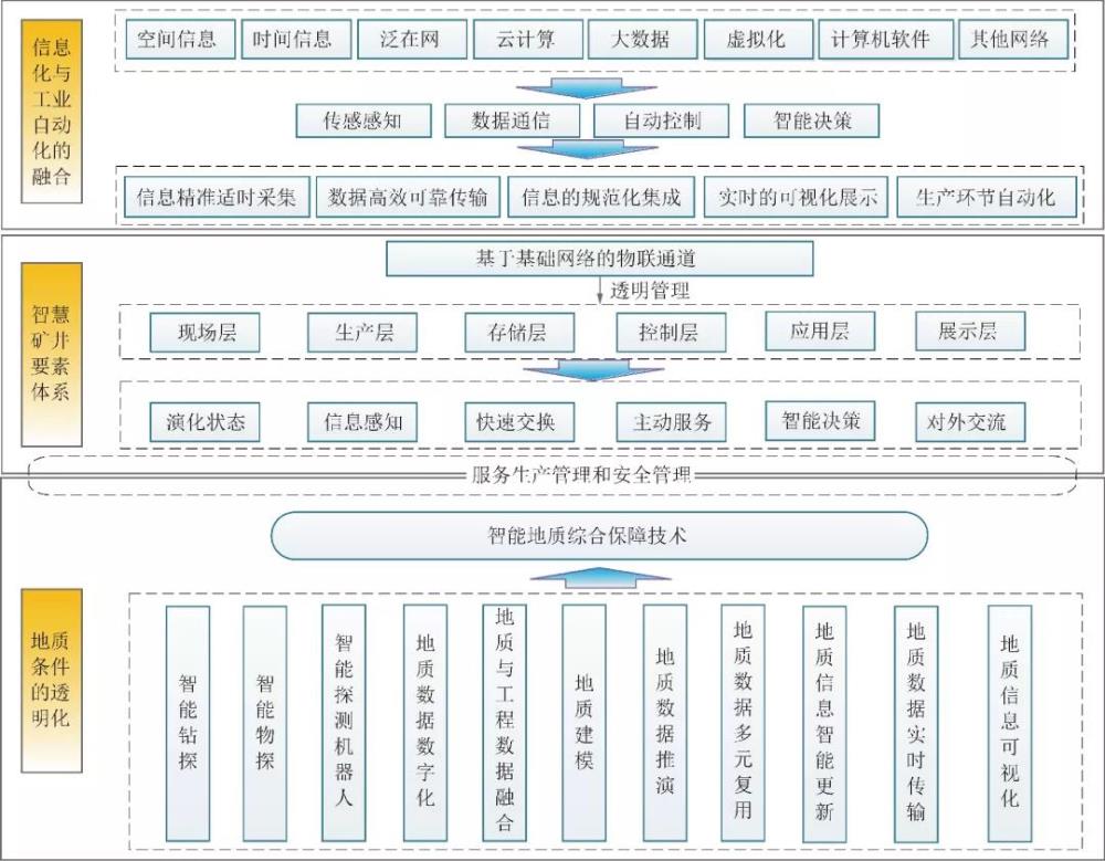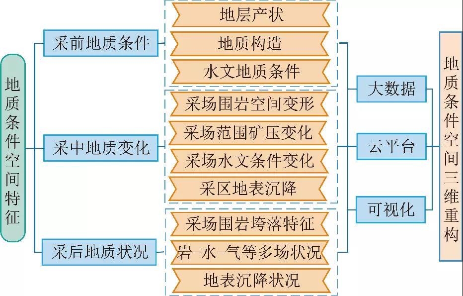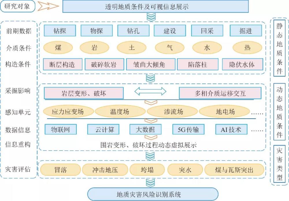 礦井透明地質(zhì)條件是煤炭精準開采智慧化的重要基礎(chǔ)。結(jié)合礦井靜態(tài)地質(zhì)要素大數(shù)據(jù)信息庫、多災害源全程信息感知與監(jiān)測、動態(tài)地質(zhì)要素虛擬現(xiàn)實展示、特殊地質(zhì)因素動態(tài)評判與風險判識、預警等智慧模塊的交互應用,從靜態(tài)與動態(tài)地質(zhì)模型角度提出實現(xiàn)煤炭精準生產(chǎn)全過程地質(zhì)條件透明化的思路。