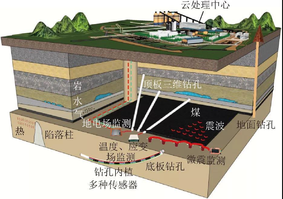 礦井地質(zhì)條件四維多場監(jiān)測感知系統(tǒng)示意
