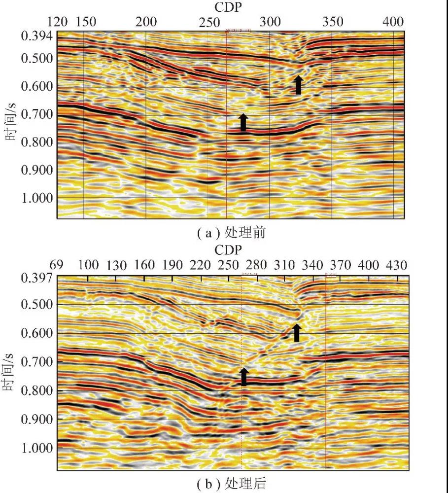 連片疊前偏移處理前后地震剖面