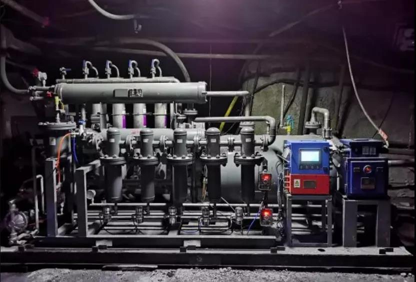 沈陽研究院針對以上松軟煤層長距離鉆孔施工難題,歷時兩年多時間,成功研制出國內(nèi)首套煤礦用超高壓膜分離制氮裝備,出口壓力1.5~2.0MPa可調(diào),產(chǎn)氣量可達900m3/h,制氮效率高,壓力損失小,適合長距離輸送。與傳統(tǒng)的制氮裝置相比,具有氮氣輸出壓力高的技術優(yōu)勢;與原有的供水、供風輔助鉆進排渣工藝相比,采用惰性氣體防火效果更好,施工過程更安全可靠。適用于煤礦井下松軟煤層定向鉆進中輔助氮氣排渣,鉆孔施工防自燃發(fā)火,有效保障松軟煤層鉆孔施工安全。