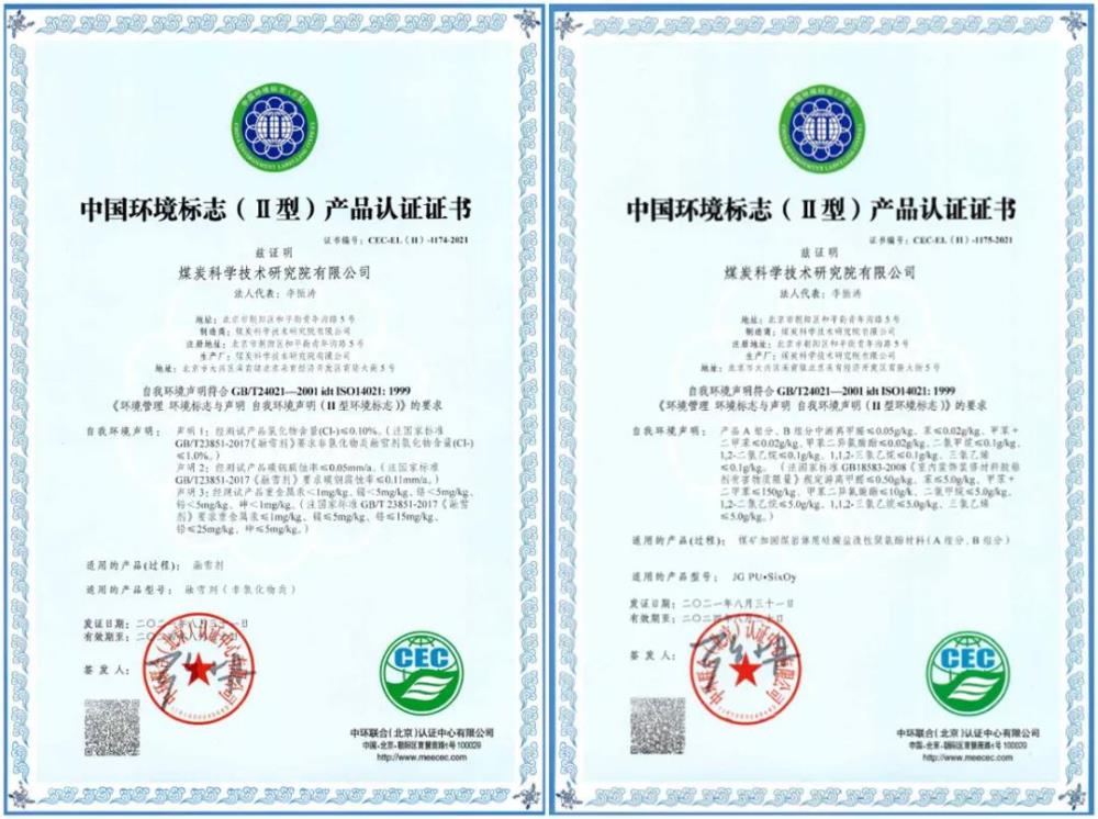 近日,由中國煤科·煤科院礦用材料分院自主研發(fā)的非氯化物類融雪劑和煤礦加固煤巖體用硅酸鹽改性聚氨酯材料(A組分、B組分)兩種產(chǎn)品獲得中國環(huán)境標(biāo)志II型認(rèn)證,其中煤礦加固煤巖體用硅酸鹽改性聚氨酯材料(A組分、B組分)是目前國內(nèi)唯一通過此項(xiàng)認(rèn)證的礦用加固材料產(chǎn)品。這標(biāo)志著煤科院自主研發(fā)的礦用產(chǎn)品已達(dá)到中國環(huán)保標(biāo)準(zhǔn),能夠助力煤礦實(shí)現(xiàn)綠色開采。