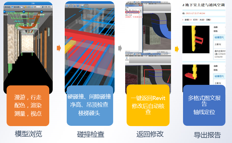 通過創(chuàng)建建筑、結(jié)構(gòu)、機電模型,將三者進行協(xié)同,便可發(fā)現(xiàn)建筑與建筑之間,建筑與結(jié)構(gòu)之間,結(jié)構(gòu)與機電工程之間存在的碰撞問題,結(jié)合施工進度計劃,并能發(fā)現(xiàn)各個施工班組之間的交叉作業(yè)、節(jié)拍施工錯誤等問題,并及時進行綜合調(diào)整。