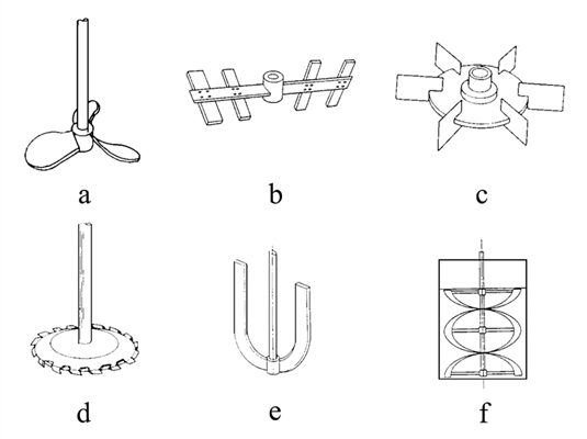 a.螺旋槳葉輪,b.槳式葉輪,c.渦輪式葉輪,d.分散型葉輪(鋸齒圓盤葉輪),