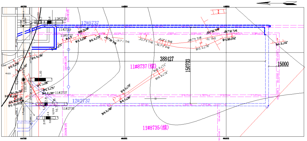 圖4 12#層5737巷與12#層8739面采掘交鋒施工切頂眼示意圖