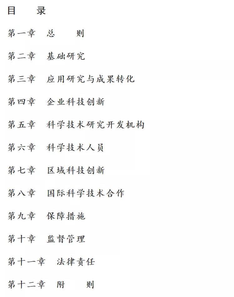 第三條 科學(xué)技術(shù)進(jìn)步工作應(yīng)當(dāng)面向世界科技前沿、面向經(jīng)濟(jì)主戰(zhàn)場(chǎng)、面向國(guó)家重大需求、面向人民生命健康,為促進(jìn)經(jīng)濟(jì)社會(huì)發(fā)展、維護(hù)國(guó)家安全和推動(dòng)人類可持續(xù)發(fā)展服務(wù)。國(guó)家鼓勵(lì)科學(xué)技術(shù)研究開發(fā),推動(dòng)應(yīng)用科學(xué)技術(shù)改造提升傳統(tǒng)產(chǎn)業(yè)、發(fā)展高新技術(shù)產(chǎn)業(yè)和社會(huì)事業(yè),支撐實(shí)現(xiàn)碳達(dá)峰碳中和目標(biāo),催生新發(fā)展動(dòng)能,實(shí)現(xiàn)高質(zhì)量發(fā)展。第四條 國(guó)家完善高效、協(xié)同、開放的國(guó)家創(chuàng)新體系,統(tǒng)籌科技創(chuàng)新與制度創(chuàng)新,健全社會(huì)主義市場(chǎng)經(jīng)濟(jì)條件下新型舉國(guó)體制,充分發(fā)揮市場(chǎng)配置創(chuàng)新資源的決定性作用,更好發(fā)揮政府作用,優(yōu)化科技資源配置,提高資源利用效率,促進(jìn)各類創(chuàng)新主體緊密合作、創(chuàng)新要素有序流動(dòng)、創(chuàng)新生態(tài)持續(xù)優(yōu)化,提升體系化能力和重點(diǎn)突破能力,增強(qiáng)創(chuàng)新體系整體效能。國(guó)家構(gòu)建和強(qiáng)化以國(guó)家實(shí)驗(yàn)室、國(guó)家科學(xué)技術(shù)研究開發(fā)機(jī)構(gòu)、高水平研究型大學(xué)、科技領(lǐng)軍企業(yè)為重要組成部分的國(guó)家戰(zhàn)略科技力量,在關(guān)鍵領(lǐng)域和重點(diǎn)方向上發(fā)揮戰(zhàn)略支撐引領(lǐng)作用和重大原始創(chuàng)新效能,服務(wù)國(guó)家重大戰(zhàn)略需要。第五條 國(guó)家統(tǒng)籌發(fā)展和安全,提高科技安全治理能力,健全預(yù)防和化解科技安全風(fēng)險(xiǎn)的制度機(jī)制,加強(qiáng)科學(xué)技術(shù)研究、開發(fā)與應(yīng)用活動(dòng)的安全管理,支持國(guó)家安全領(lǐng)域科技創(chuàng)新,增強(qiáng)科技創(chuàng)新支撐國(guó)家安全的能力和水平。第六條 國(guó)家鼓勵(lì)科學(xué)技術(shù)研究開發(fā)與高等教育、產(chǎn)業(yè)發(fā)展相結(jié)合,鼓勵(lì)學(xué)科交叉融合和相互促進(jìn)。國(guó)家加強(qiáng)跨地區(qū)、跨行業(yè)和跨領(lǐng)域的科學(xué)技術(shù)合作,扶持革命老區(qū)、民族地區(qū)、邊遠(yuǎn)地區(qū)、欠發(fā)達(dá)地區(qū)的科學(xué)技術(shù)進(jìn)步。國(guó)家加強(qiáng)軍用與民用科學(xué)技術(shù)協(xié)調(diào)發(fā)展,促進(jìn)軍用與民用科學(xué)技術(shù)資源、技術(shù)開發(fā)需求的互通交流和技術(shù)雙向轉(zhuǎn)移,發(fā)展軍民兩用技術(shù)。第七條 國(guó)家遵循科學(xué)技術(shù)活動(dòng)服務(wù)國(guó)家目標(biāo)與鼓勵(lì)自由探索相結(jié)合的原則,超前部署重大基礎(chǔ)研究、有重大產(chǎn)業(yè)應(yīng)用前景的前沿技術(shù)研究和社會(huì)公益性技術(shù)研究,支持基礎(chǔ)研究、前沿技術(shù)研究和社會(huì)公益性技術(shù)研究持續(xù)、穩(wěn)定發(fā)展,加強(qiáng)原始創(chuàng)新和關(guān)鍵核心技術(shù)攻關(guān),加快實(shí)現(xiàn)高水平科技自立自強(qiáng)。第八條 國(guó)家保障開展科學(xué)技術(shù)研究開發(fā)的自由,鼓勵(lì)科學(xué)探索和技術(shù)創(chuàng)新,保護(hù)科學(xué)技術(shù)人員自由探索等合法權(quán)益。科學(xué)技術(shù)研究開發(fā)機(jī)構(gòu)、高等學(xué)校、企業(yè)事業(yè)單位和公民有權(quán)自主選擇課題,探索未知科學(xué)領(lǐng)域,從事基礎(chǔ)研究、前沿技術(shù)研究和社會(huì)公益性技術(shù)研究。第九條 學(xué)校及其他教育機(jī)構(gòu)應(yīng)當(dāng)堅(jiān)持理論聯(lián)系實(shí)際,注重培養(yǎng)受教育者的獨(dú)立思考能力、實(shí)踐能力、創(chuàng)新能力和批判性思維,以及追求真理、崇尚創(chuàng)新、實(shí)事求是的科學(xué)精神。國(guó)家發(fā)揮高等學(xué)校在科學(xué)技術(shù)研究中的重要作用,鼓勵(lì)高等學(xué)校開展科學(xué)研究、技術(shù)開發(fā)和社會(huì)服務(wù),培養(yǎng)具有社會(huì)責(zé)任感、創(chuàng)新精神和實(shí)踐能力的高級(jí)專門人才。第十條 科學(xué)技術(shù)人員是社會(huì)主義現(xiàn)代化建設(shè)事業(yè)的重要人才力量,應(yīng)當(dāng)受到全社會(huì)的尊重。國(guó)家堅(jiān)持人才引領(lǐng)發(fā)展的戰(zhàn)略地位,深化人才發(fā)展體制機(jī)制改革,全方位培養(yǎng)、引進(jìn)、用好人才,營(yíng)造符合科技創(chuàng)新規(guī)律和人才成長(zhǎng)規(guī)律的環(huán)境,充分發(fā)揮人才第一資源作用。第十一條 國(guó)家營(yíng)造有利于科技創(chuàng)新的社會(huì)環(huán)境,鼓勵(lì)機(jī)關(guān)、群團(tuán)組織、企業(yè)事業(yè)單位、社會(huì)組織和公民參與和支持科學(xué)技術(shù)進(jìn)步活動(dòng)。全社會(huì)都應(yīng)當(dāng)尊重勞動(dòng)、尊重知識(shí)、尊重人才、尊重創(chuàng)造,形成崇尚科學(xué)的風(fēng)尚。第十二條 國(guó)家發(fā)展科學(xué)技術(shù)普及事業(yè),普及科學(xué)技術(shù)知識(shí),加強(qiáng)科學(xué)技術(shù)普及基礎(chǔ)設(shè)施和能力建設(shè),提高全體公民特別是青少年的科學(xué)文化素質(zhì)??茖W(xué)技術(shù)普及是全社會(huì)的