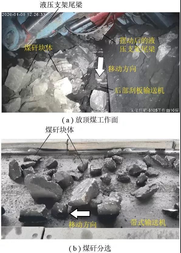綜采工作面和放頂煤工作面的區(qū)別主要在于放煤。煤炭開(kāi)采過(guò)程中主要涉及到兩類(lèi)煤矸識(shí)別問(wèn)題,一是綜采工作面采煤機(jī)割煤過(guò)程中的煤巖界面識(shí)別,二是綜放工作面放煤過(guò)程中的煤矸識(shí)別。前者已經(jīng)在智能綜采工作面初步實(shí)現(xiàn),而后者要對(duì)后部刮板運(yùn)輸機(jī)上快速運(yùn)動(dòng)的、呈堆積狀態(tài)的煤矸進(jìn)行識(shí)別,目前仍然存在許多技術(shù)難題。目前,放頂煤工作面仍普遍采用人工放煤方式,放煤工人從液壓支架間隙觀察后部刮板運(yùn)輸機(jī)上煤流,觀察矸石是否被放出或者放出的量,進(jìn)而決定是否停止放煤。這種方法勞動(dòng)強(qiáng)度大、生產(chǎn)效率低,且容易出現(xiàn)由于工人主觀原因發(fā)生誤操作的情況。
