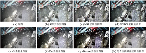 此外,還提出了一種空頻域聯(lián)合強(qiáng)化去粉塵算法,并在朱仙莊礦進(jìn)行了測(cè)試。與其他算法相比,所提算法具有更好的去粉塵能力,可以保留更多的細(xì)節(jié),同時(shí)抑制噪聲和光干擾的能力也更強(qiáng)。近年來(lái),一些更智能的算法也被提出并實(shí)現(xiàn)了更好的粉塵(或水霧)去除性能。