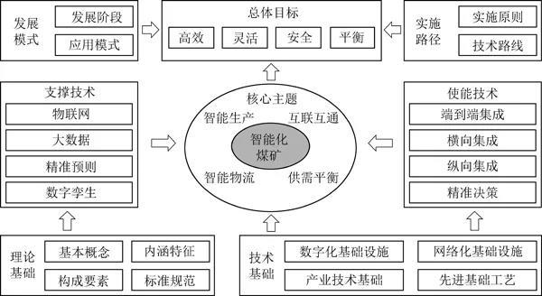 煤炭智能柔性開(kāi)發(fā)供給體系以煤礦生產(chǎn)系統(tǒng)柔性和運(yùn)輸柔性為核心,以煤炭開(kāi)發(fā)供給柔性度為基礎(chǔ),以物聯(lián)網(wǎng)、大數(shù)據(jù)、區(qū)塊鏈等新一代信息技術(shù)為代表的支撐技術(shù)和以橫向集成、縱向擴(kuò)展等使能技術(shù)為支撐,實(shí)現(xiàn)煤炭供給的智能柔性生產(chǎn)、安全穩(wěn)定供給、動(dòng)態(tài)供需平衡目標(biāo)。