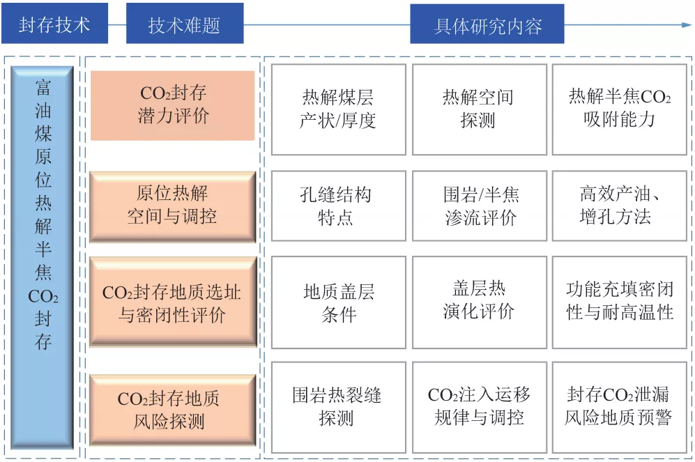 煤原位熱解半焦CO2封存技術(shù)關(guān)鍵技術(shù)難題:富油煤原位熱解與CO2封存均尚處于初步探索階段,CO2封存空間調(diào)控、封存潛力評價方法、封存地質(zhì)條件選址評價、地質(zhì)風(fēng)險探測等關(guān)鍵問題與技術(shù)方面仍需重點展開研究。