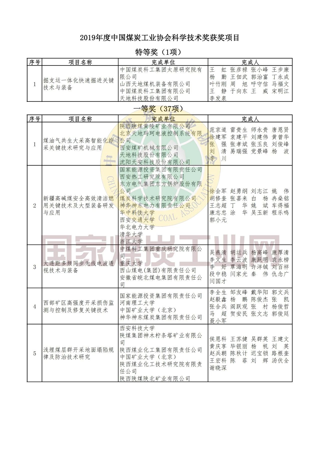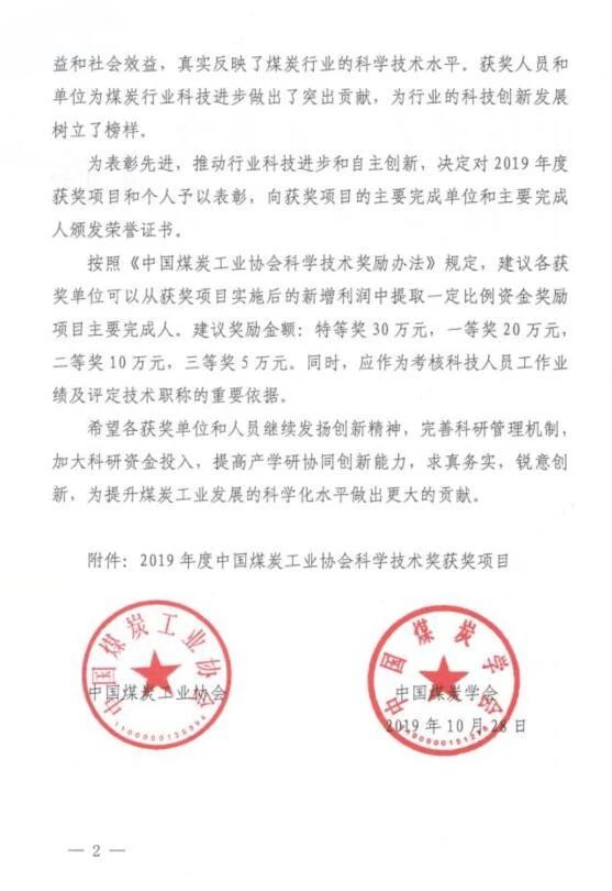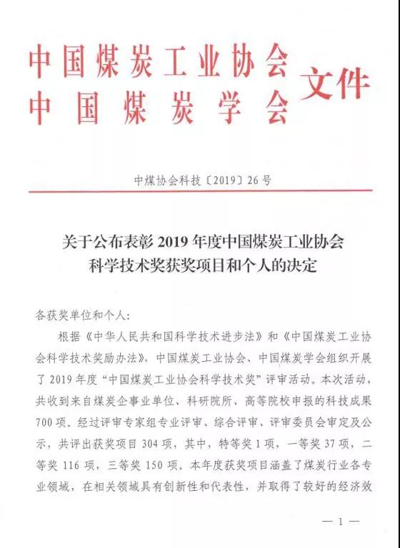 關于公布表彰2019年度中國煤炭工業(yè)協(xié)會科學技術獎獲獎項目和個人的決定