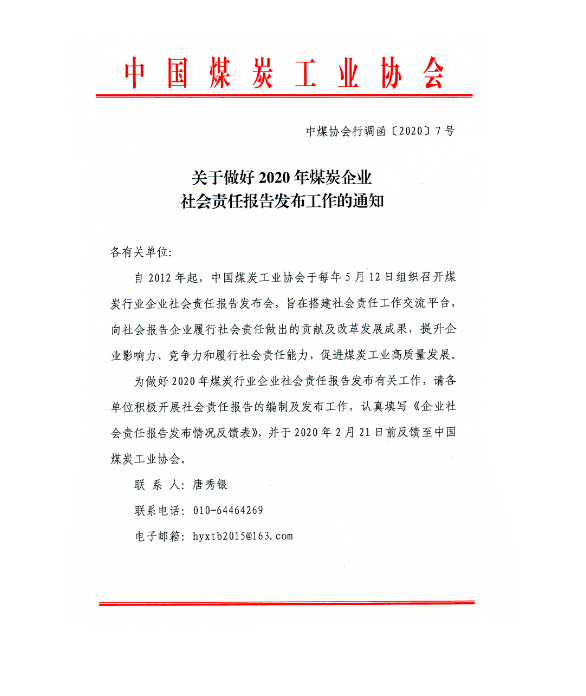 關(guān)于做好2020年煤炭企業(yè)社會(huì)責(zé)任報(bào)告發(fā)布工作的通知