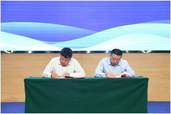 ▲山西省創(chuàng)新科技發(fā)展基金會秘書長栗爭榮與并州建設(shè)公司董事長張建國進(jìn)行“科創(chuàng)中國?山西碳谷”科技發(fā)展基金簽約