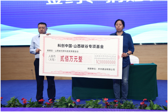 為打造山西碳谷,山西省創(chuàng)新科技發(fā)展基金會設(shè)立山西碳谷專項(xiàng)基金,專門資助建設(shè)零碳科普體驗(yàn)館,促進(jìn)“雙碳”技術(shù)成果轉(zhuǎn)化,開展“雙碳”科技智庫課題研究。開幕式上,山西省創(chuàng)新科技發(fā)展基金會秘書長栗爭榮與并州建設(shè)公司董事長張建國進(jìn)行“科創(chuàng)中國?山西碳谷”科技發(fā)展基金簽約,山西省創(chuàng)新科技發(fā)展基金會理事長溫輝芹接受捐贈(zèng)。
