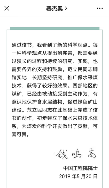 圖1 錢老師為《保水采煤的理論與實(shí)踐》寫的序言(局部)