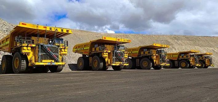 準能集團整裝待發(fā)的無人駕駛礦用卡車隊伍