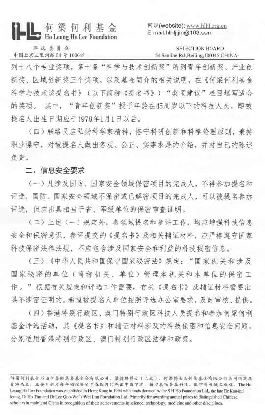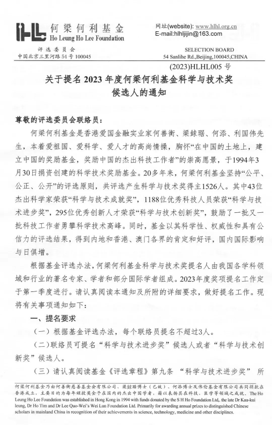 近日,多家提名單位發(fā)布2023年度何梁何利基金科學(xué)與技術(shù)獎(jiǎng)候選人提名通知,2023年度何梁何利基金科學(xué)與技術(shù)獎(jiǎng)候選人提名通知原文如下: