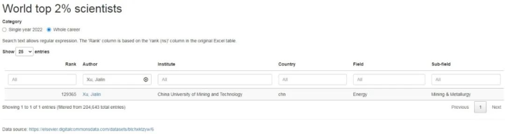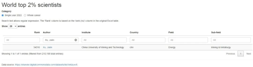 日前,2023年全球前2%頂尖科學(xué)家榜單發(fā)布。中國礦業(yè)大學(xué)許家林教授入選“終身科學(xué)影響力排行榜”、“2023年度科學(xué)影響力排行榜”。