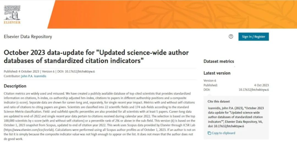 據(jù)悉,2023年全球前2%頂尖科學(xué)家榜單由美國斯坦福大學(xué)和愛思唯爾數(shù)據(jù)庫共同發(fā)布。榜單基于全球權(quán)威的引文與索引數(shù)據(jù)庫Scopus,依照科技工作者科研產(chǎn)出、Google Scholar Metrics期刊評(píng)分、H指數(shù)、成果被引、成果中作者排序位置等參數(shù)進(jìn)行綜合評(píng)估,遴選出排名前2%的科學(xué)家,分為22個(gè)領(lǐng)域和174個(gè)細(xì)分子領(lǐng)域,旨在提供一個(gè)科學(xué)家長期科研表現(xiàn)的衡量指標(biāo),更客觀、更真實(shí)地反映科學(xué)家的影響力。
